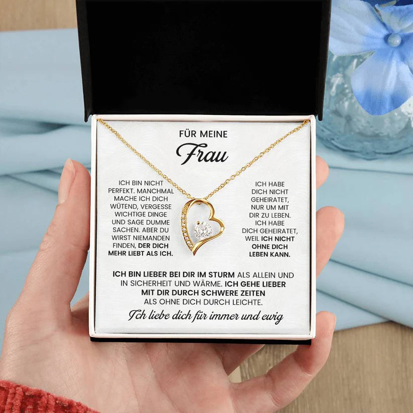 Unsere Herzkette mit der liebevollen Botschaft „Für meine Frau“ steht für tiefe Verbundenheit, Treue und ewige Liebe.