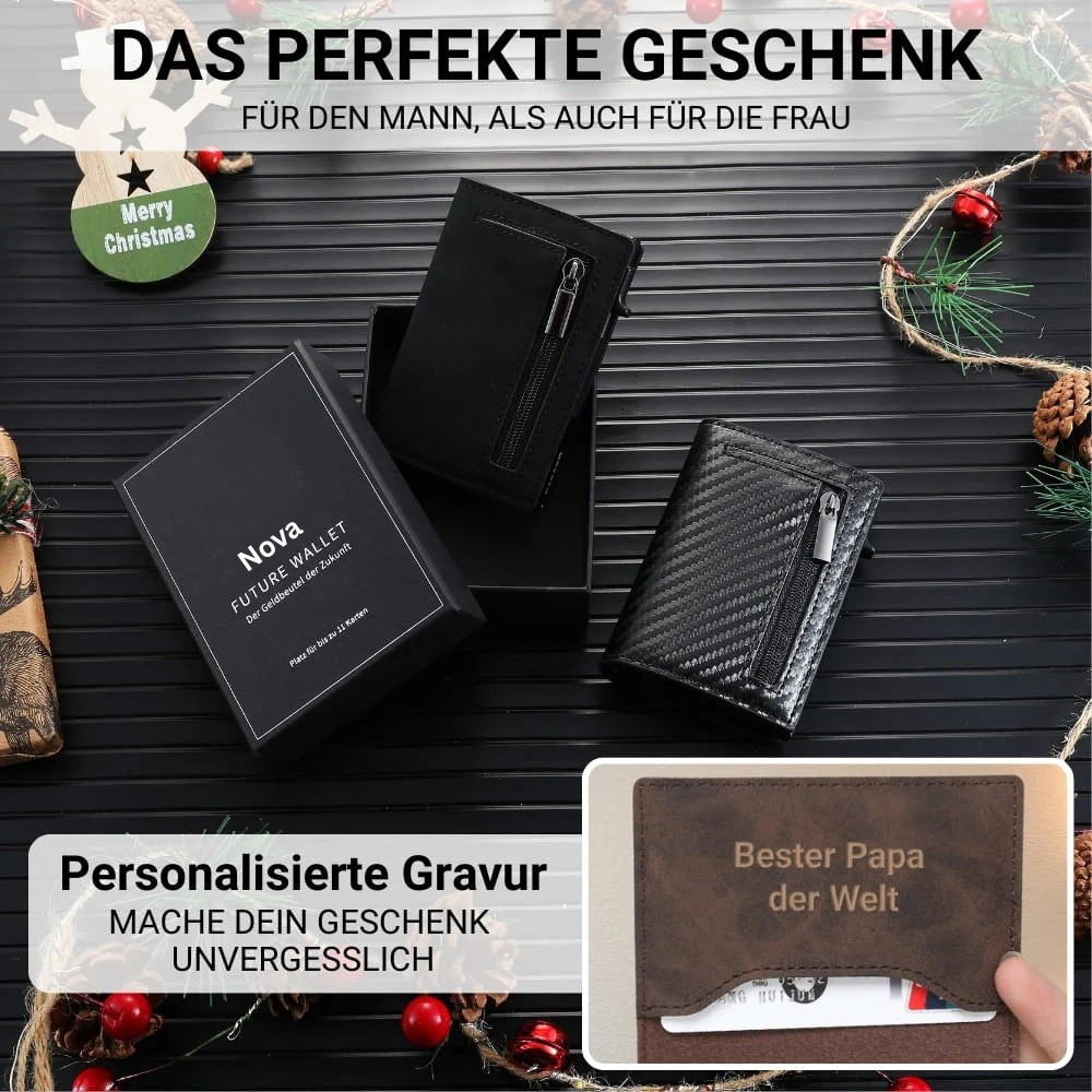 Dank unserer smarten Slide-Funktion gelangst du mit nur einem Klick an alle deine Karten und musst dir keine Sorgen mehr machen, dass sie rausfallen. Dank dem RFID und NFC Blocker sind deine Karten vor Datendiebstahl geschützt, da die Frequenzen deiner Karten von unserem Wallet geblockt werden.
