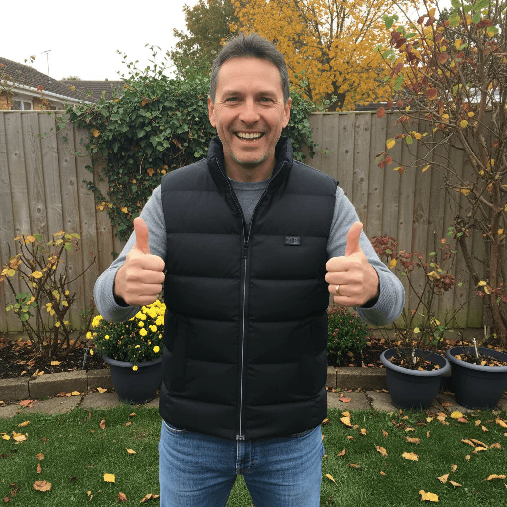 Mit 15 integrierten Heizflächen wärmt die SmartHeat Heizweste Deinen gesamten Oberkörper von Brust über Rücken bis hin zu Schultern und Nacken. Du spürst sofort gleichmäßige Wärme, egal wie kalt es draußen ist.